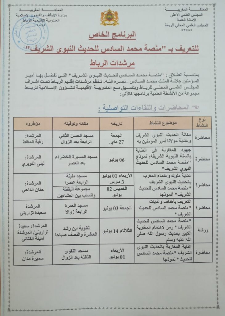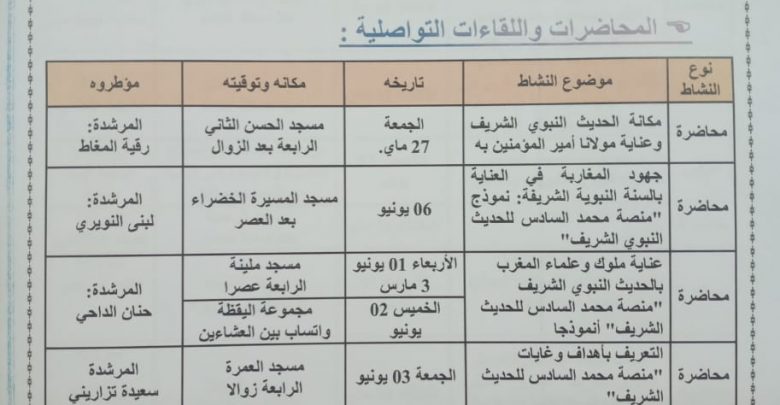 الرئيسية/البرامج/يرامج الوعظ و الارشاد/برنامج المرشدين/البرنامج الخاص للتعريف بمنصة محمد السادس للحديث الشريف من إعداد مرشدات ومرشدين الرباط المجلس العلمي أخر الأخبار البرنامج الخاص للتعريف بمنصة محمد السادس للحديث الشريف من إعداد مرشدات ومرشدين الرباط admin 1 يونيو 2022 598 أقل من دقيقة المرشدات مرشدين اظهر المزيد